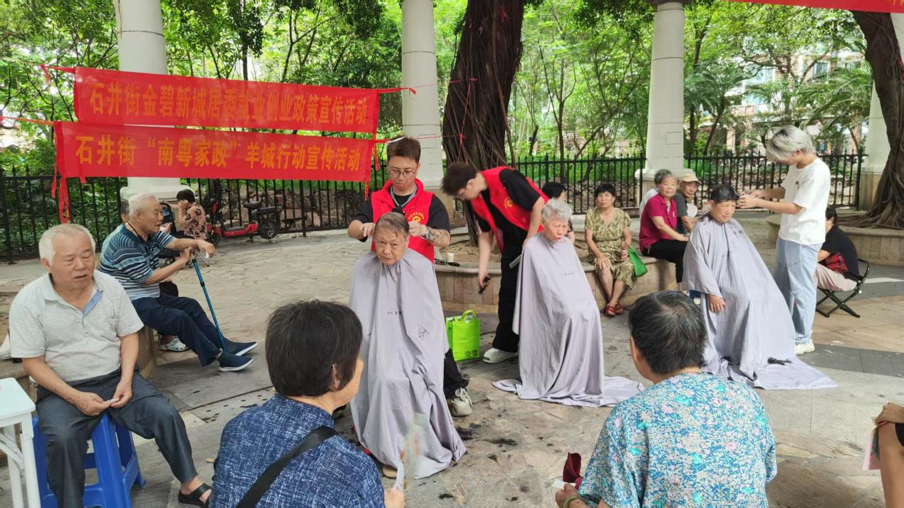 近日,白云区石井街“南粤家政”公益服务队活跃于金碧新城社区与凰岗社区,相继开展“健康舒缓肩颈艾贴”与“爱心义剪”主题公益服务活动。短短两日,超百位社区长者热情参与其中,工作人员以精湛手艺与暖心服务,在社区里传递着浓浓的关怀与温情。